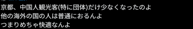 “京都现在只是中国游客(特别是团体)变少了, 其他国家的外国游客还是照常在。 所以现在去京都非常舒服、非常惬意。”