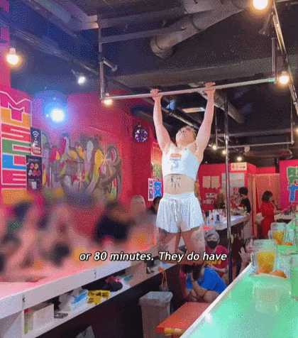 比如,身穿健身服的服务生,在顾客面前表演引体向上,那叫一个轻松...