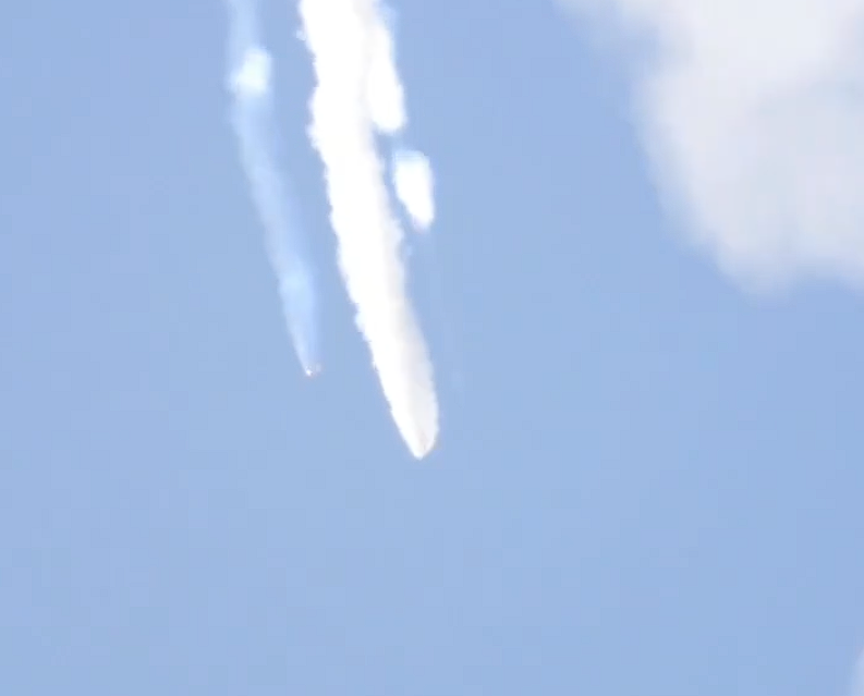 直播画面显示,火箭升空后姿态迅速失控,呈螺旋状飞行,地面控制中心判断无法完成任务,启动自动飞行终止系统(AFTS)使其解体,初步分析指向一级发动机喷管驱动控制异常,导致火箭向西偏离安全边界。