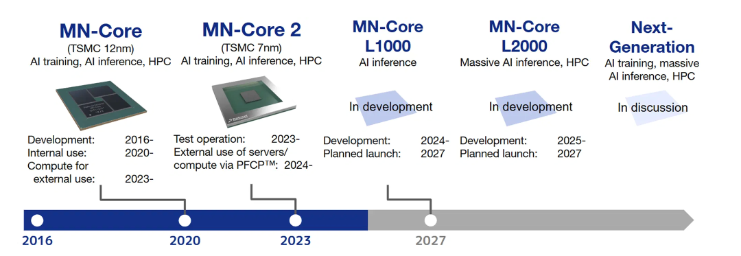 PFN是日本目前估值最高的 AI 初创公司,也是日本 AI 芯片自主化的核心力量。于2016年启动了第一代MN-Core处理器的研发,目前已经研发了两代。2026 年,PFN 已开始部署其最新一代 MN-Core L1000,并正与世嘉(SEGA)等公司合作,将 AI 芯片的能力从高性能计算(HPC)扩展到更广泛的工业和游戏渲染领域。