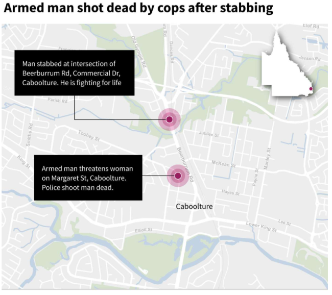 11月18日凌晨,昆州Caboolture发生持刀伤人事件,警方随后击毙一名男子,另一名受害者重伤垂危。