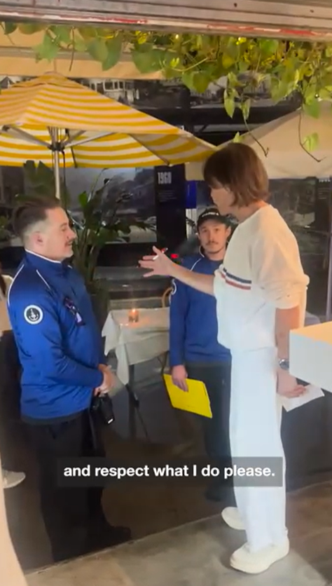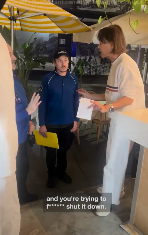 她在用餐高峰时段亲自与执法人员对峙,视频中她说:“你们正在吓到我和顾客。”