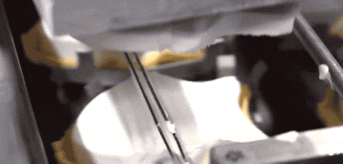 灌入黄油,我们可以看到,这个浇灌口下方有个划拉一下的切断动作。