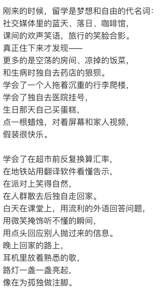也更清楚:留学不是滤镜,不是风光,也不是“别人朋友圈里的留学”,而是:现实、生长、挣扎、突破,是一次可以改变人生的旅程。