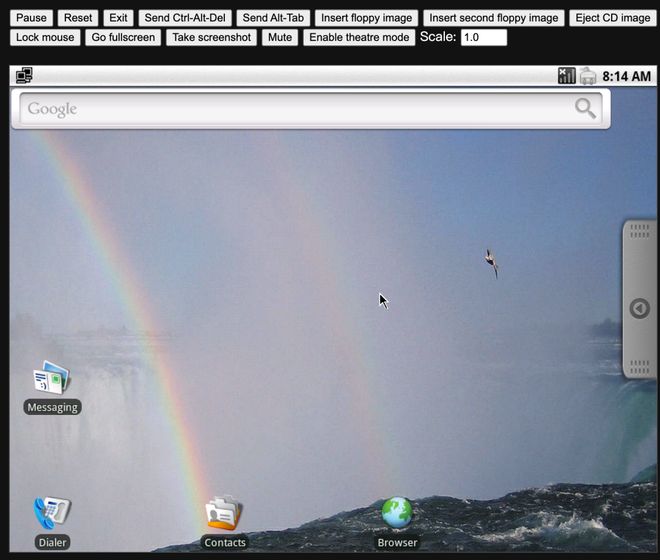 v86 上面还能体验到 Android-x86,信息、拨号、联系人、浏览器全都有,侧滑还能打开程序列表。