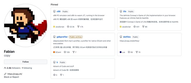 这个项目叫 v86,网址 copy.sh/v86,免费开源,在 GitHub 上有 2 万多人星标,从 2012 年开始更新一直维护到现在。