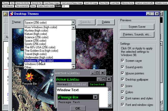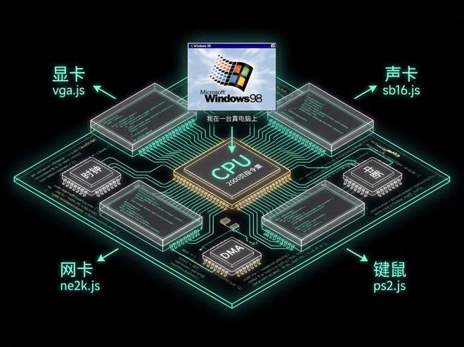 所以基本可以确定,网页里跑的就是一台 Windows 98 本尊。