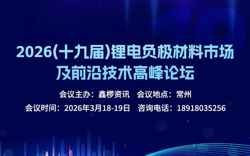 2026(十九届)锂电负极材料市场及前沿技术高峰论坛