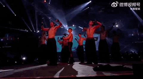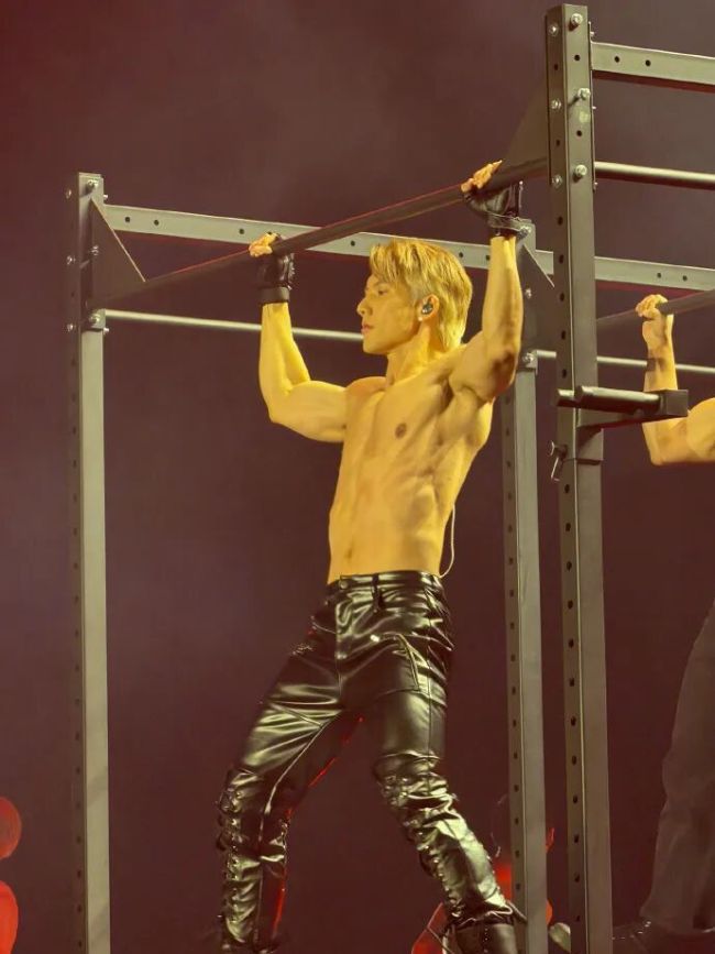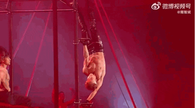 舞台活脱脱搞成了猛男秀,裸半身吊单杠,秀腹肌钢管舞,拼命的架势连隔壁韩团看了都得敬佩三分。