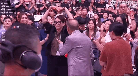 谢霆锋巡演期间,老板带着整个公司去捧场,上演“一家人就是要整整齐齐”。