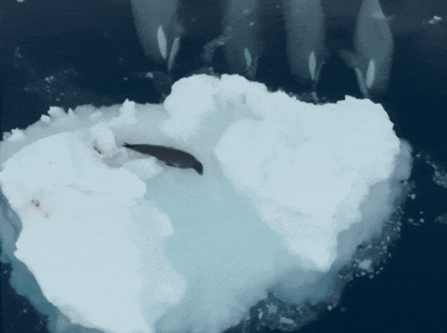 见到海豹登上了救生筏,虎鲸们并没有放弃。
