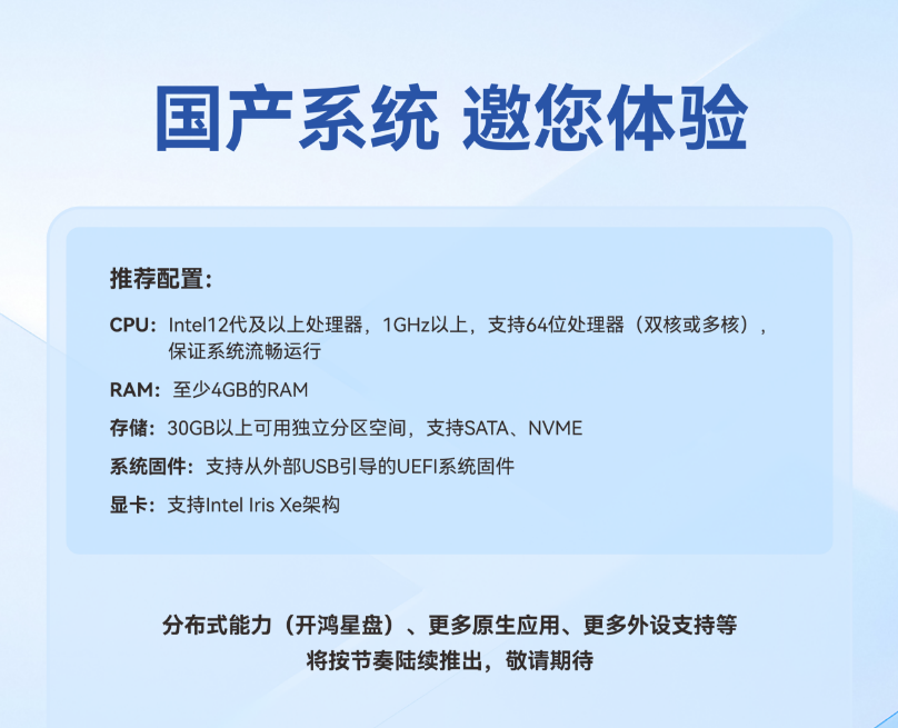 官方还透露,分布式能力(开鸿星盘)、更多原生应用、更多外设支持等将陆续上线。