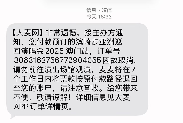 主办方发布的声明提到,尊敬的观众朋友们:我们非常遗憾地通知您,原定于2025年11月29日在上海东方体育中心举办的滨崎步2025亚洲巡回演唱会上海站,因“不可抗力因素”取消。