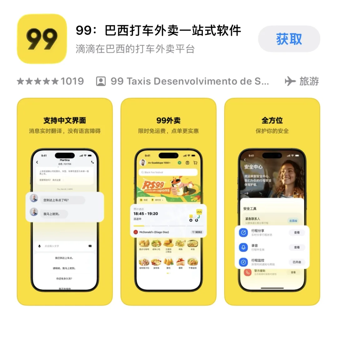 对于计划前往巴西旅行、游玩的用户而言,可提前在国内应用商店下载99 App,落地后无需额外操作即可一键叫车,轻松开启巴西之旅。