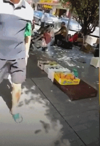 视频中可以看到,食物就在垃圾桶旁边售卖,