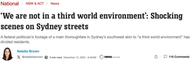 将悉尼西南部一条主要街道形容为“宛如第三世界的环境”,