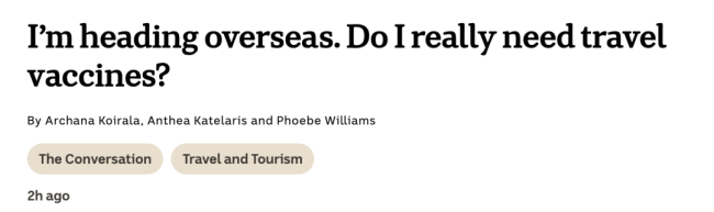 随着澳大利亚进入短途出境旅游高峰,许多人忙于规划行程,却容易忽视出行前疫苗接种的重要性。