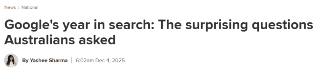 谷歌近日发布了2025年度澳洲搜索趋势报告,一如既往地揭示了过去一年澳洲人在网上最关心的那些“灵魂问题”。