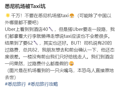 重要的事情说三遍,一旦打了出租车,很容易就陷入连环套之中,谁也不想刚落地悉尼,就白白损失一笔钱吧。