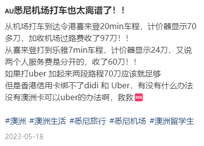 还有人表示,一定要警惕Uber或者DiDi司机的套路,特别是来澳洲旅行的游客,更需要注意这一点。