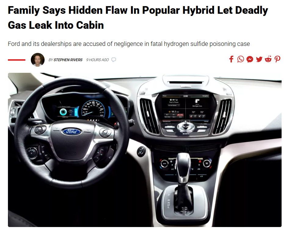 原告律师在起诉书中直指两大核心问题:一是福特未能设计安全的电池排气结构,管路连接存在先天设计疏忽;二是车辆未配备任何硫化氢检测或报警系统,缺乏最基本的安全冗余。