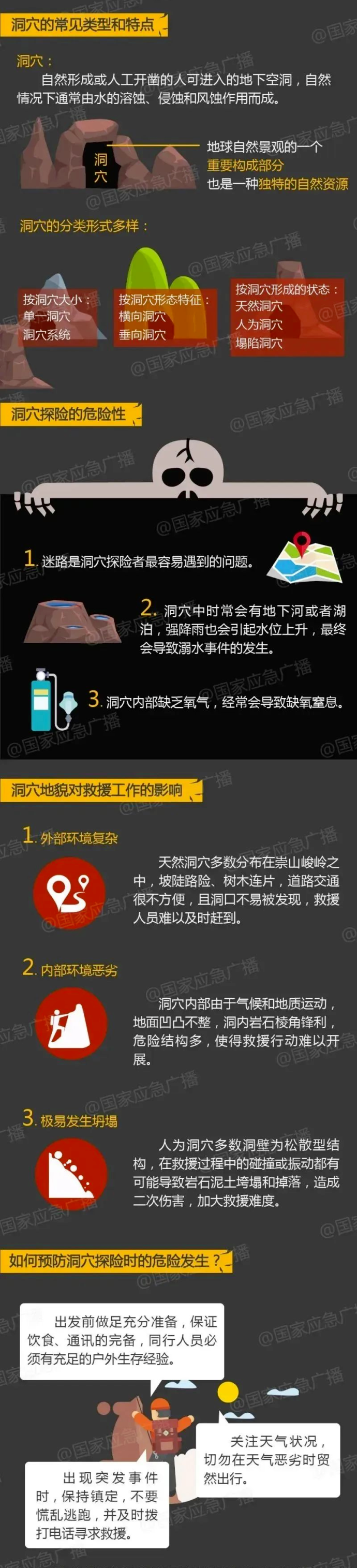 消防提醒,洞穴里藏着大自然的瑰丽,也藏着未知的凶险,如果盲目探险稍有不慎便可能发生意外,户外游玩欢乐虽多,但也不能忽视潜在风险,尤其别盲目跟风“网红打卡地”。