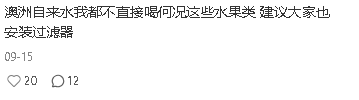 澳洲自来水我都不直接喝,何况这些水果类,建议大家也安装过滤器。