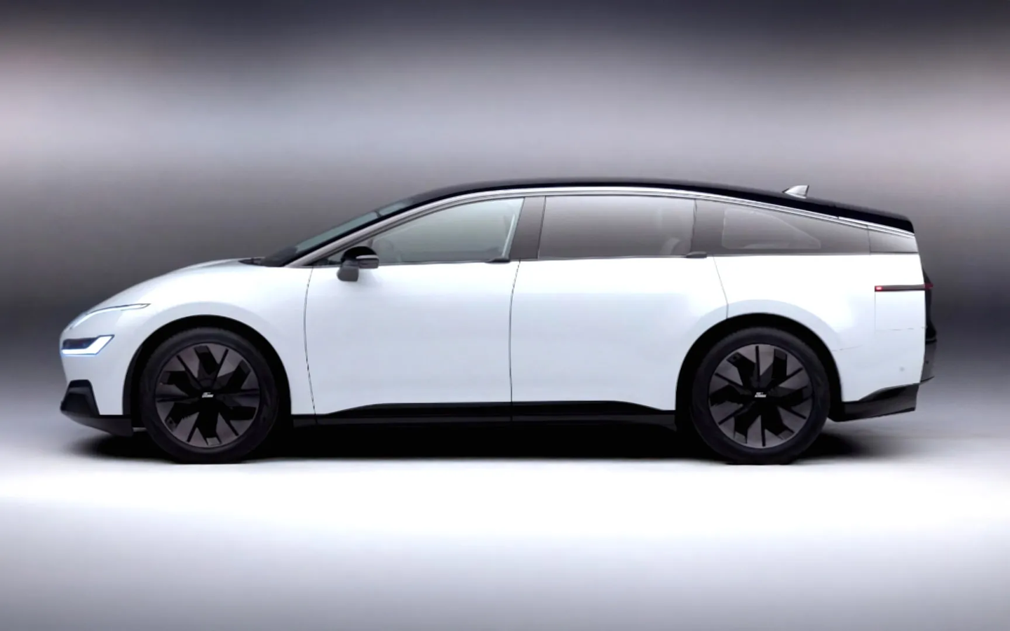 这款车型显然是一款研发原型车,外观风格与福特现有产品线截然不同,采用极致空气动力学设计,车头圆润,风挡倾角极大,衔接上修长且倾斜下滑的车顶。
