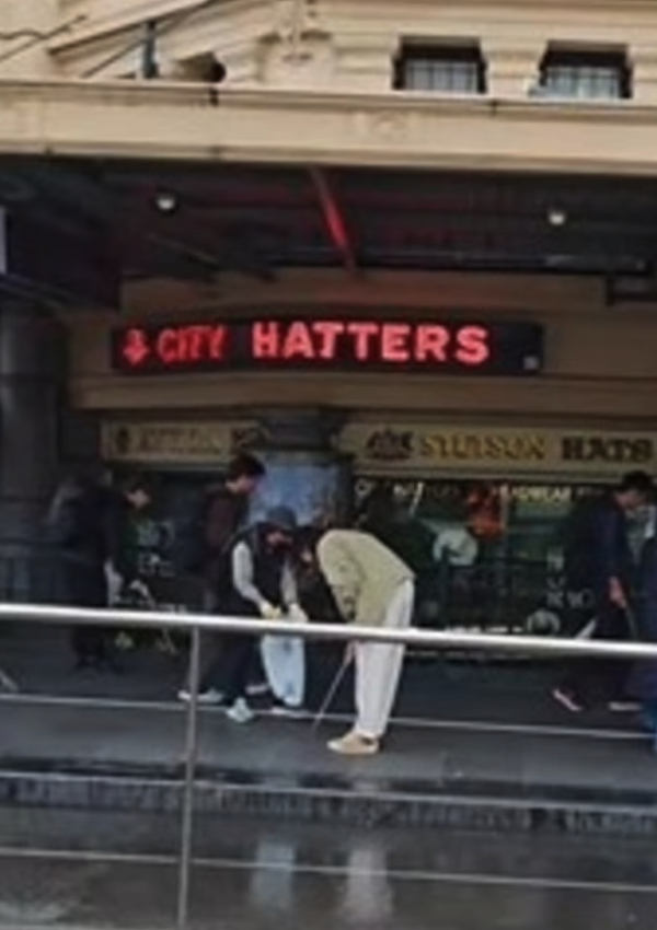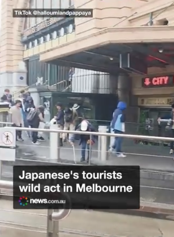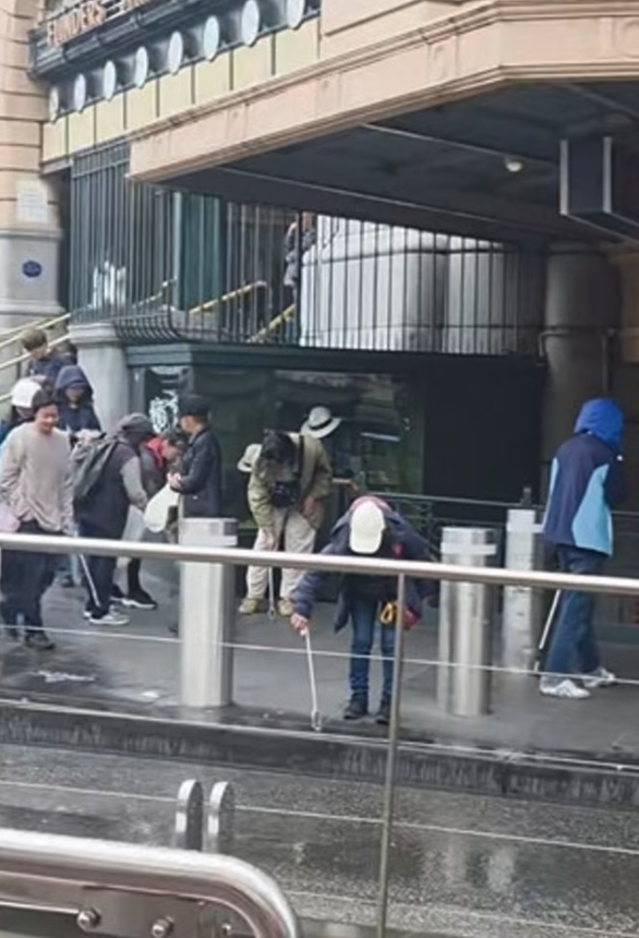 一群日本游客在墨尔本下了火车后的Flinders Street Station门口边走边自发清洁,他们的行为让澳洲人震惊。