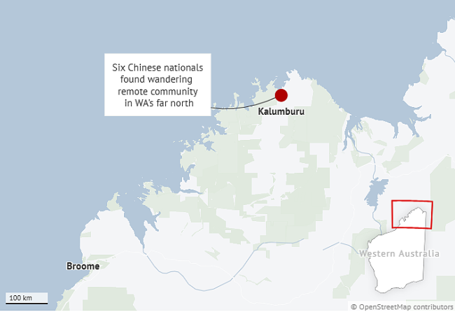 这6名中国男子疑似通过海上偷渡进入澳洲。他们于周一和周二在澳洲偏远的Kalumburu社区陆续被发现。