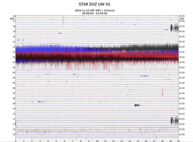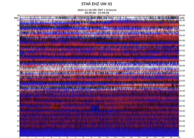 太平洋西北地震网络(PNSN)发布的监测图显示: