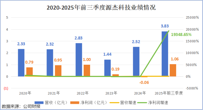 2025年前三季度,源杰科技实现营业收入3.83亿元,同比增长115.09%;实现净利润1.06亿元,一举扭亏为盈,同比增幅高达19348.65%。