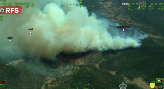 新州中西部Bogee地区突发山火,火势正快速蔓延,当地住宅与商铺面临威胁。