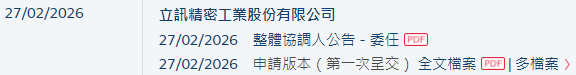2026年2月27日,来自深圳宝安区的立讯精密工业股份有限公司Luxshare Precision Industry Co., Ltd.(下称"立讯精密”)向港交所递交招股书,拟香港主板挂牌上市。这是继其于2025年8月18日递表失效后的再一次申请。
