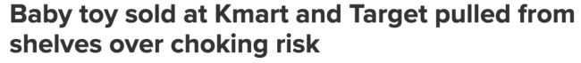 近日,一款在 Kmart 和 Target 销售、面向婴幼儿的热门玩具因存在潜在的安全隐患被澳大利亚官方紧急召回。