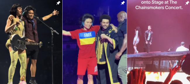 去年12月,他又在悉尼棕榈树音乐节The Chainsmokers的演出中冲上舞台。