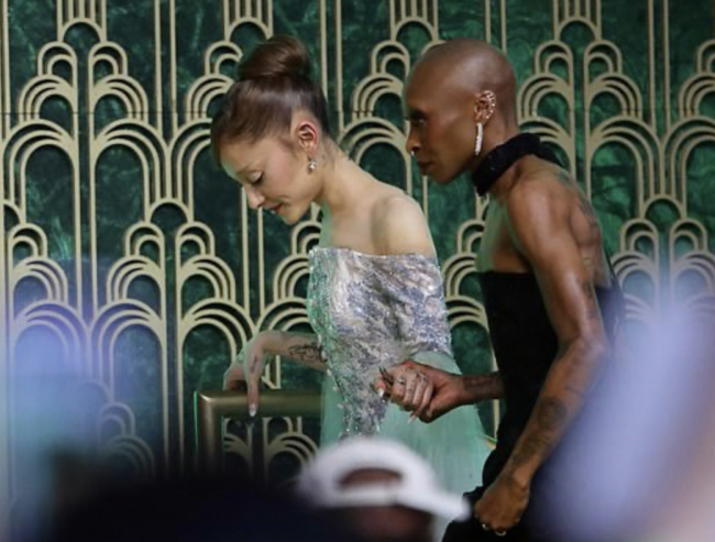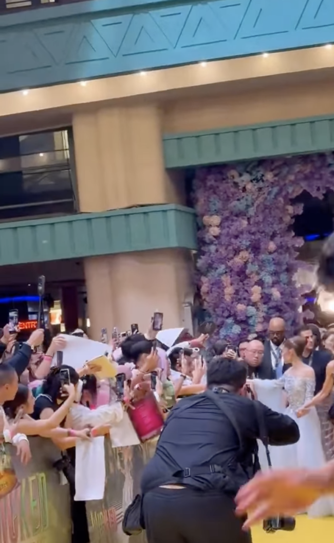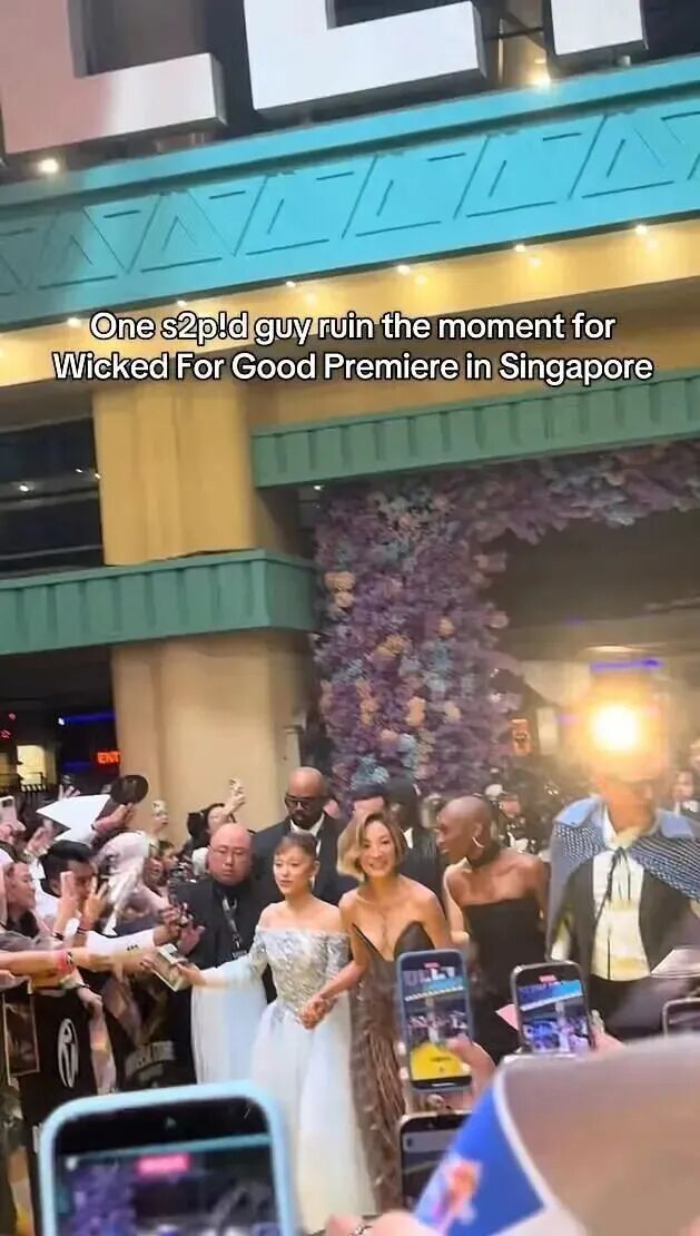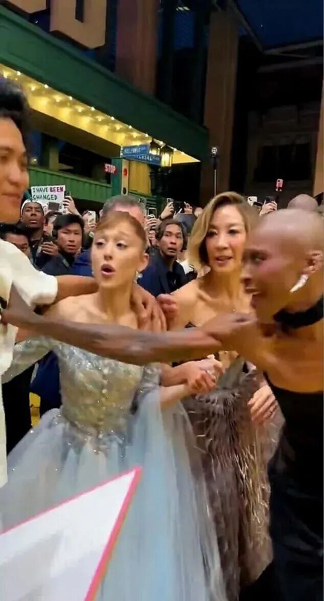 出演电影的“A妹”爱莉安娜·格兰德和辛西娅·埃里沃、杨紫琼,手牵手走在红毯上,几人看起来心情愉悦,时不时向拥挤的粉丝群挥手致意。