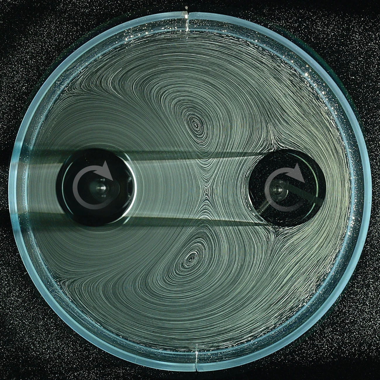 在实验中,一个圆柱转子由外部动力驱动旋转,另一个则保持被动状态。研究人员预测,主动转子的运动会在液体中形成流场,从而带动被动转子转动。为了更直观观察流体如何传递动力,团队还在液体中加入了微小气泡,用于显示流动轨迹;同时,他们还测试了不同转子间距和不同转速条件下的表现。