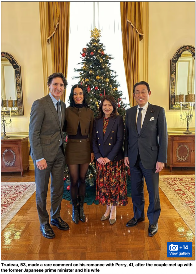 他写道:“加拿大前总理特鲁多带着他的伴侣Katy Perry来到日本,与我们共进午餐。”