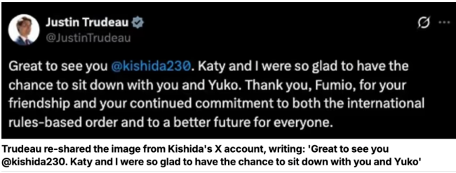 岸田还回忆了当年的政坛岁月:“在我担任首相期间,我曾多次会见各国领导人。当我访问加拿大时,我们曾共同努力加强双边关系……我很高兴我们能延续这份友谊。”