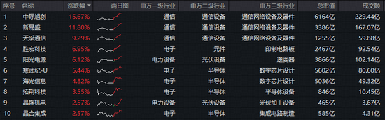 细分方向来看,光模块三巨头大爆发,中际旭创涨超15%,股价创历史新高,最新市值超6100亿元,新易盛、天孚通信分别涨超11%和9%,表现亮眼!此外,印制电路板(PCB)龙头胜宏科技涨近7%,AI芯片龙头寒武纪涨超5%,涨幅居前。