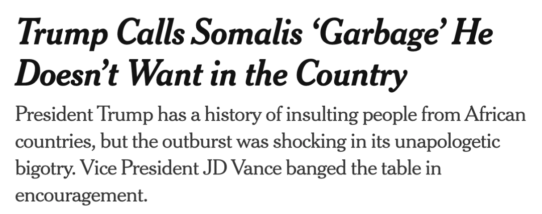 川普在采访中点名索马里地区,称其“长期被暴力和腐败困扰”,并提及明尼苏达州的索马里移民社区,暗示部分移民群体可能对美国安全构成威胁。