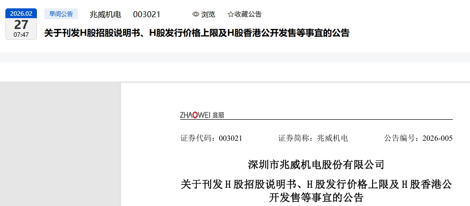 2026年2月27日这天,有四家A股公司(兆威机电、埃斯顿、美格智能、特锐德)集中发布了关于他们H股上市进展的公告。简单来说,就是这几家公司去香港上市的事都有了新动静。