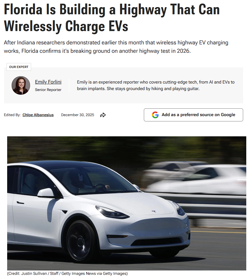 中佛罗里达快速路管理局负责该项目建设,并将整条道路分为三段施工,其中第一段将率先引入无线充电技术,预计2029年对公众开放,目前只面向参与初期测试的、经过专门改装的车辆。