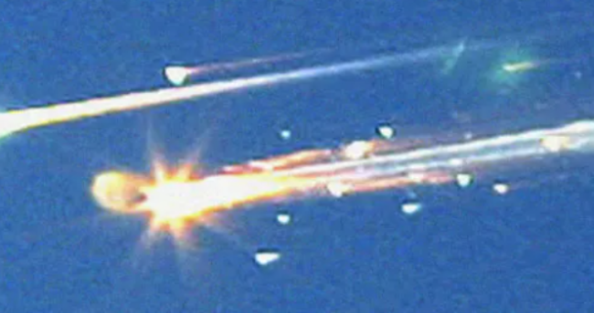 几分钟后,美国各地的电视台画面出现了惊人的景象:清晨的天空中,几道火光划过天际,碎片拖出长长的尾迹。航天飞机在距离地面约 61公里的高空解体,残骸散落在德克萨斯和路易斯安那两州的大片地区。