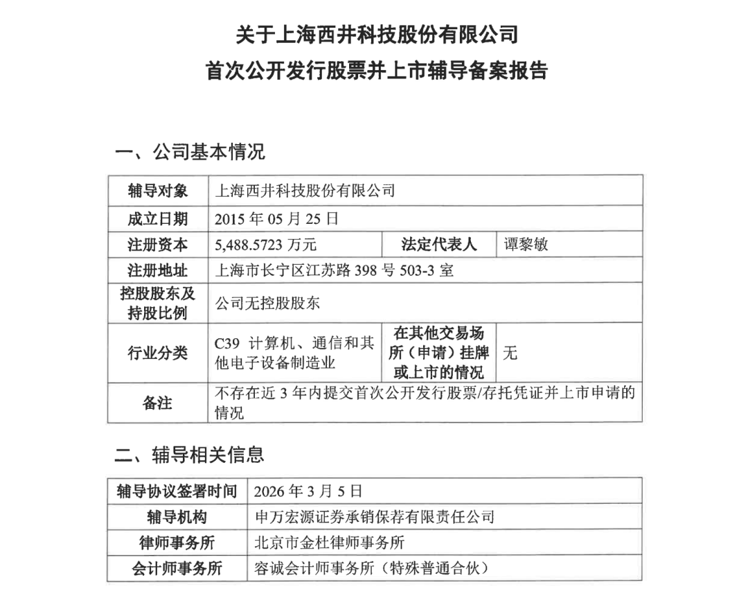 证监会官网信息显示,上海西井科技股份有限公司(简称“西井科技”)已于近日更新A股IPO辅导备案,辅导机构为申万宏源证券。