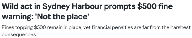 但在悉尼港(Sydney Harbour)这种地方,一边游泳一边庆祝…说好听是浪漫,说难听就是,危险又违法,还可能把命给丢了...