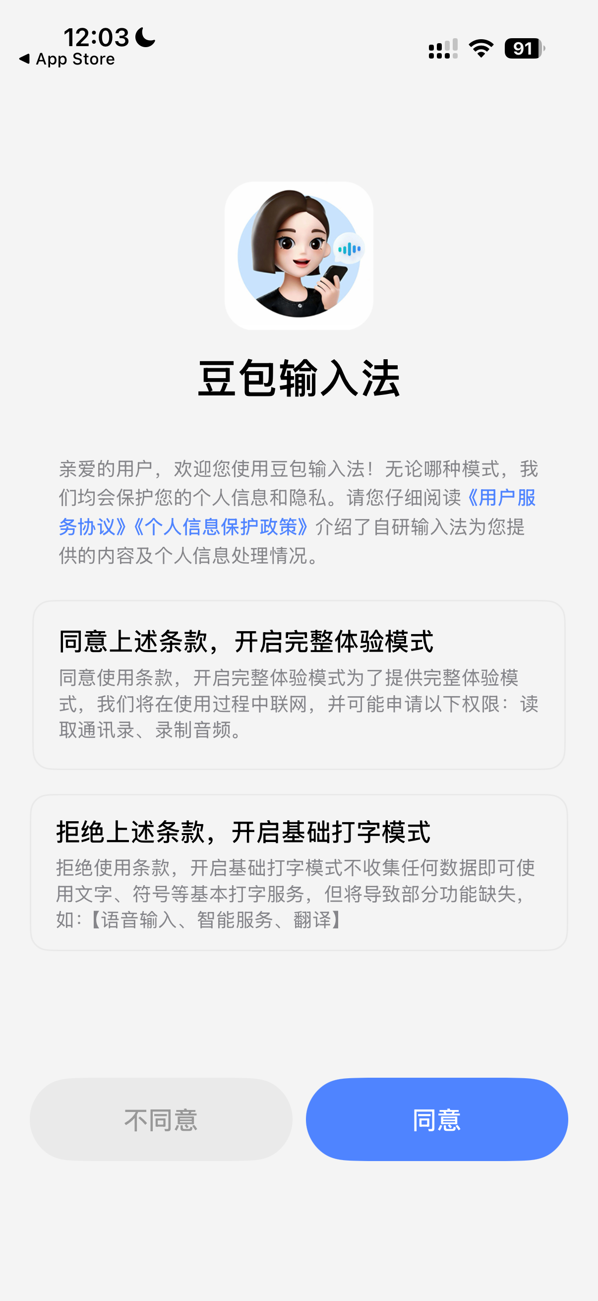 完整体验在使用过程中会联网,并可能申请读取通讯录、录音音频权限,基础打字不会收集任何数据即可使用文字、符号等基本打字服务,但将缺失语音输入、翻译等功能。