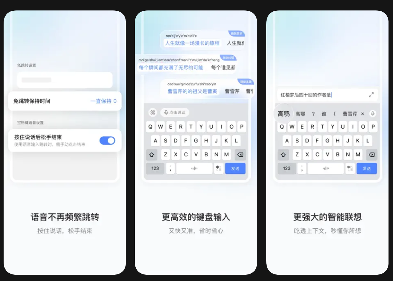 同时支持剪贴板、常用语等工具,具有文字、标点符号、emoji的联想能力。