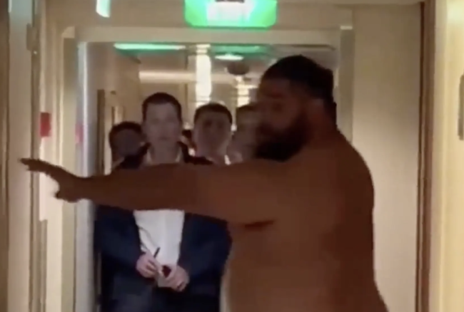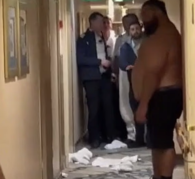 监控拍下的可怕画面,迈克尔赤身怒吼着,哐哐砸门,还不顾旁人的劝阻,整个人情绪失控、撕扯衣物,还喊话威胁别人,说“我要杀了你们!”